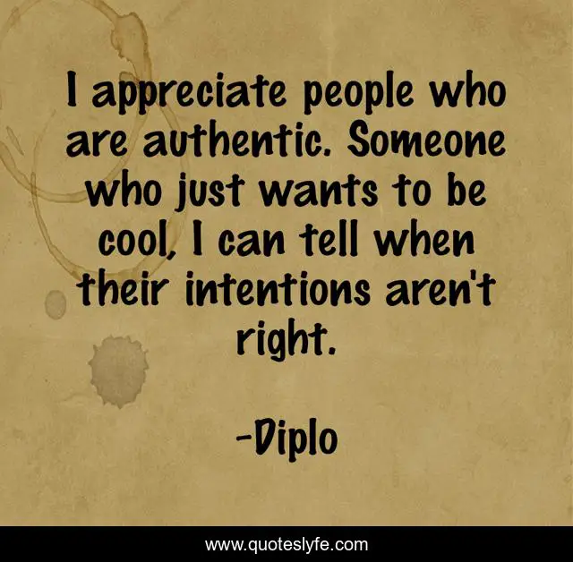 This page presents the quote "I appreciate people who are authentic. Someone who just wants to be cool, I can tell when their intentions aren't right.". Author of this quote is Diplo. This quote is about appreciate, i can, people,.