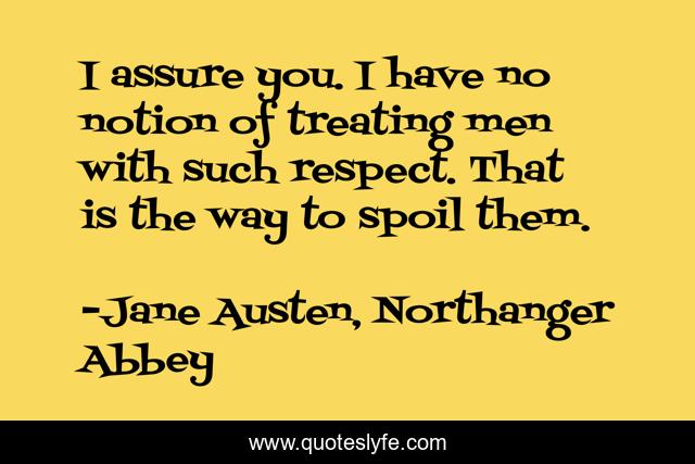 This page presents the quote "I assure you. I have no notion of treating men with such respect. That is the way to spoil them.". Author of this quote is Jane Austen, Northanger Abbey. .