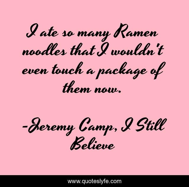 "Jeremy Camp, I Still Believe Quotes." Quoteslyfe.com, 2025. Fri. 05 Dec. 2025. <https://www.quoteslyfe.com/quote/I-ate-so-many-Ramen-noodles-that-150527>.