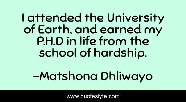 "Matshona Dhliwayo Quotes." Quoteslyfe.com, 2025. Sat. 06 Dec. 2025. <https://www.quoteslyfe.com/quote/I-attended-the-University-of-Earth-and-57567>.