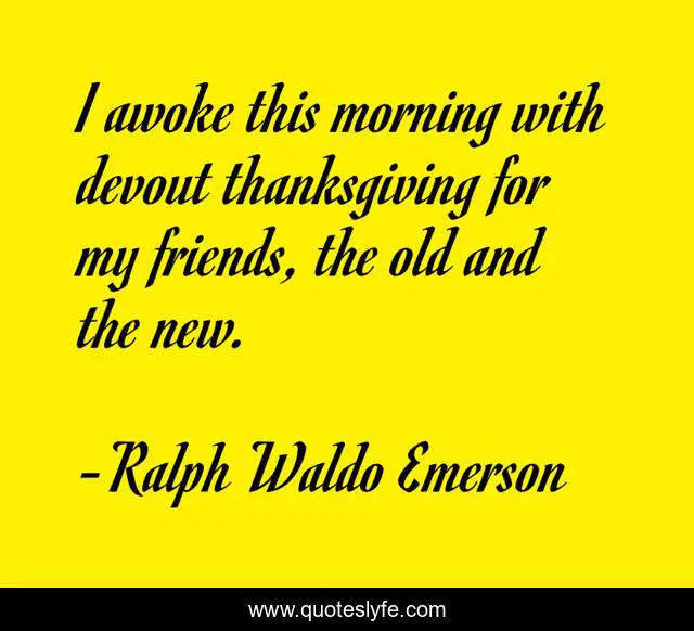 This page presents the quote "I awoke this morning with devout thanksgiving for my friends, the old and the new.". Author of this quote is Ralph Waldo Emerson. .