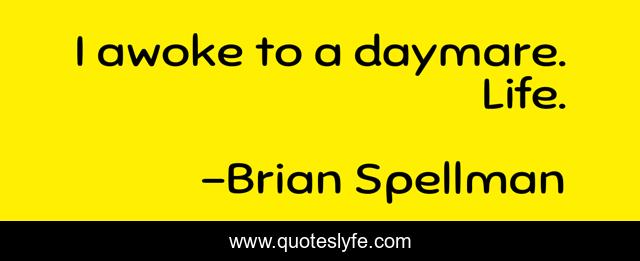 This page presents the quote "I awoke to a daymare. Life.". Author of this quote is Brian Spellman. This quote is about nightmares, life-philosophy, dreams,.