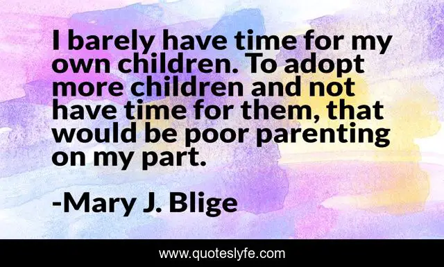 This page presents the quote "I barely have time for my own children. To adopt more children and not have time for them, that would be poor parenting on my part.". Author of this quote is Mary J. Blige. This quote is about poor, children, time,.