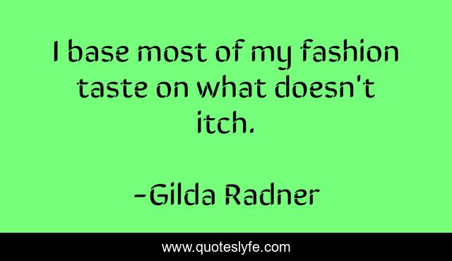 This page presents the quote "I base most of my fashion taste on what doesn't itch.". Author of this quote is Gilda Radner. .