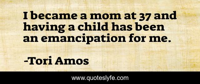 This page presents the quote "I became a mom at 37 and having a child has been an emancipation for me.". Author of this quote is Tori Amos. This quote is about me, emancipation, child,.