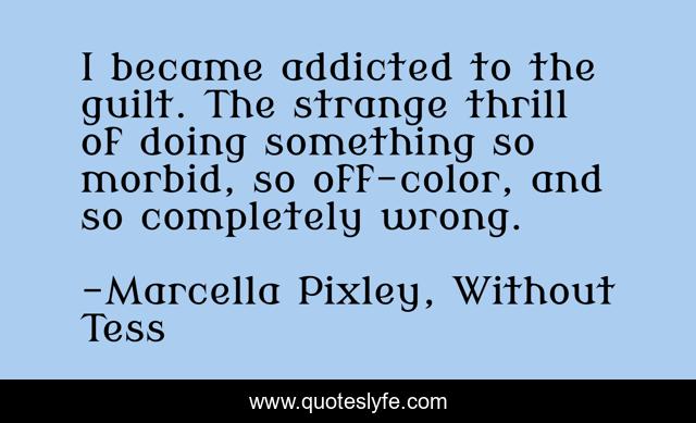This page presents the quote "I became addicted to the guilt. The strange thrill of doing something so morbid, so off-color, and so completely wrong.". Author of this quote is Marcella Pixley, Without Tess. .