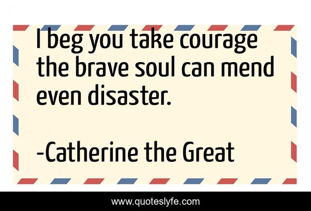 This page presents the quote "I beg you take courage the brave soul can mend even disaster.". Author of this quote is Catherine the Great. This quote is about brave, soul,.