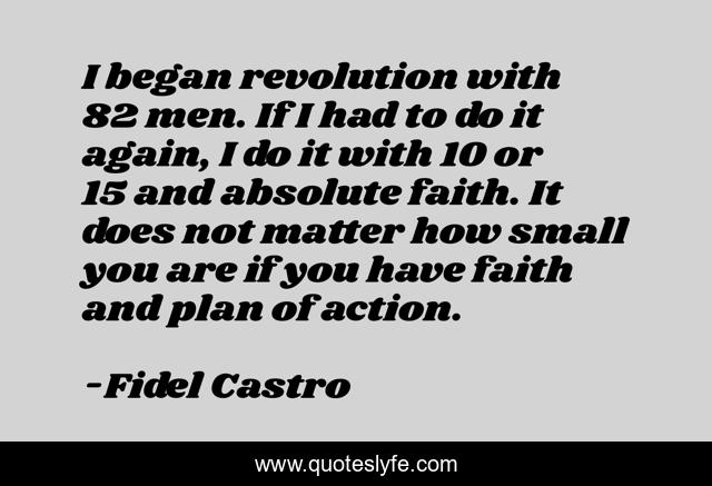 I began revolution with 82 men. If I had to do it again, I do it with 10 or 15 and absolute faith. It does not matter how small you are if you have faith and plan of action.