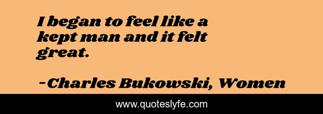 This page presents the quote "I began to feel like a kept man and it felt great.". Author of this quote is Charles Bukowski, Women. This quote is about self-deprecatory, humour,.