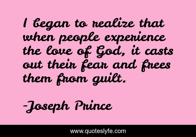 This page presents the quote "I began to realize that when people experience the love of God, it casts out their fear and frees them from guilt.". Author of this quote is Joseph Prince. This quote is about god, love, experience, affection,.
