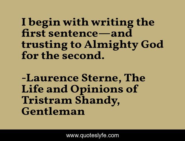 This page presents the quote "I begin with writing the first sentence—and trusting to Almighty God for the second.". Author of this quote is Laurence Sterne, The Life and Opinions of Tristram Shandy, Gentleman. This quote is about literature, 18th-century,.