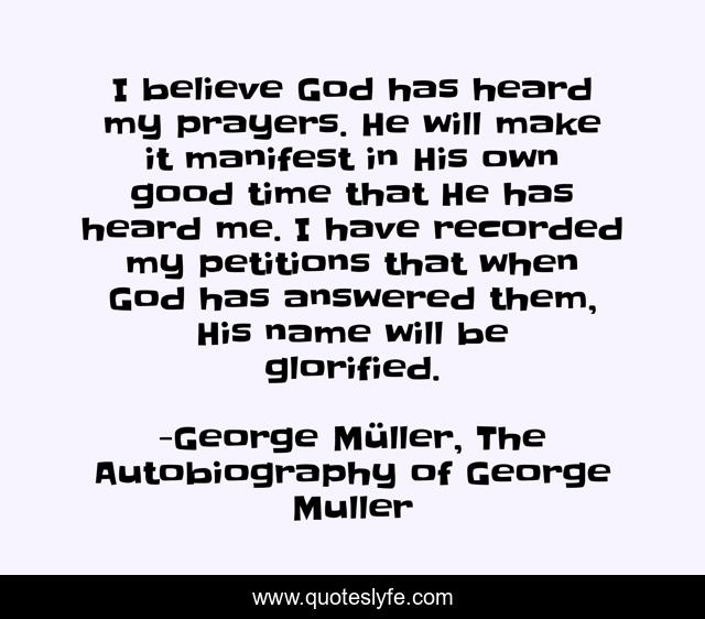 "George Müller, The Autobiography of George Muller Quotes." Quoteslyfe.com, 2026. Wed. 14 Jan. 2026. <https://www.quoteslyfe.com/quote/I-believe-God-has-heard-my-prayers-61750>.