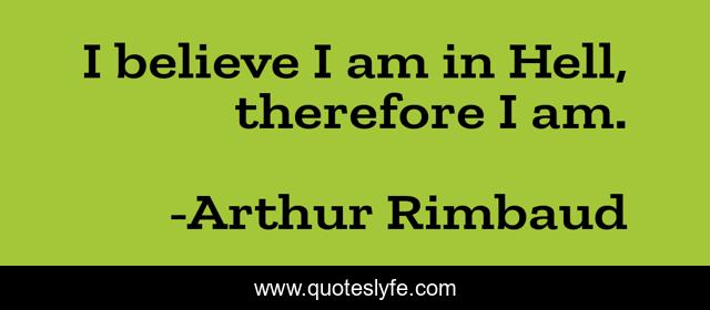 "Arthur Rimbaud Quotes." Quoteslyfe.com, 2025. Sun. 07 Dec. 2025. <https://www.quoteslyfe.com/quote/I-believe-I-am-in-Hell-therefore-110915>.