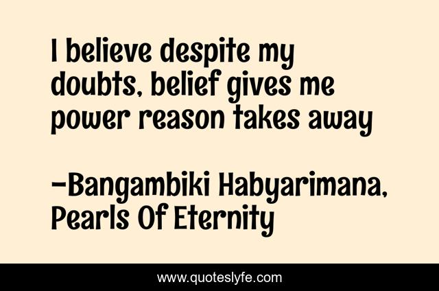 "Bangambiki Habyarimana, Pearls Of Eternity Quotes." Quoteslyfe.com, 2025. Mon. 08 Dec. 2025. <https://www.quoteslyfe.com/quote/I-believe-despite-my-doubts-belief-gives-111104>.