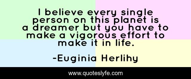 This page presents the quote "I believe every single person on this planet is a dreamer but you have to make a vigorous effort to make it in life.". Author of this quote is Euginia Herlihy. .