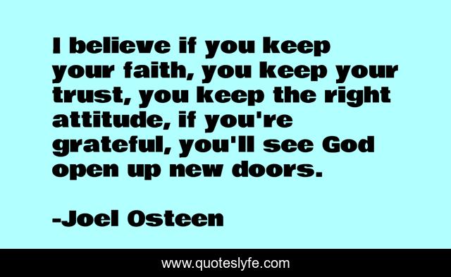 This page presents the quote "I believe if you keep your faith, you keep your trust, you keep the right attitude, if you're grateful, you'll see God open up new doors.". Author of this quote is Joel Osteen. This quote is about enthusiasm, religious, inspirational, christianity,.