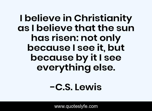 This page presents the quote "I believe in Christianity as I believe that the sun has risen: not only because I see it, but because by it I see everything else.". Author of this quote is C.S. Lewis. This quote is about faith, religion, christianity, sun,.