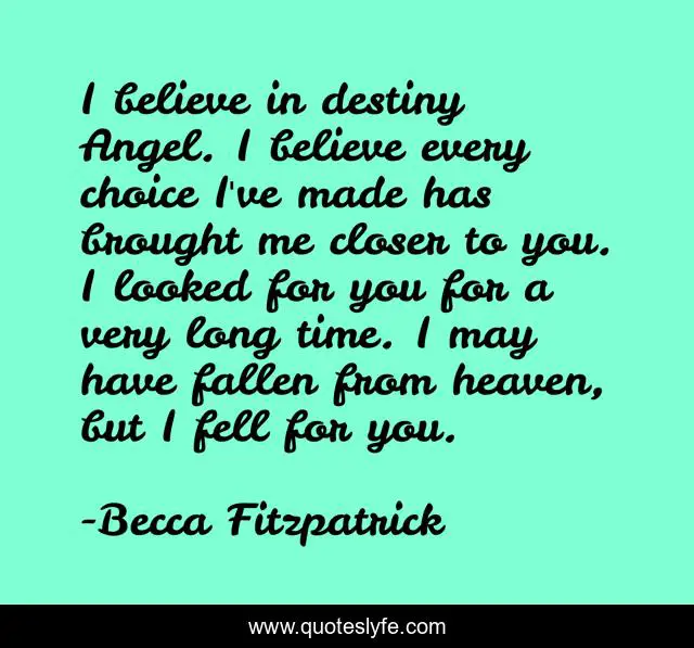 "Becca Fitzpatrick Quotes." Quoteslyfe.com, 2025. Mon. 08 Dec. 2025. <https://www.quoteslyfe.com/quote/I-believe-in-destiny-Angel-I-believe-168465>.