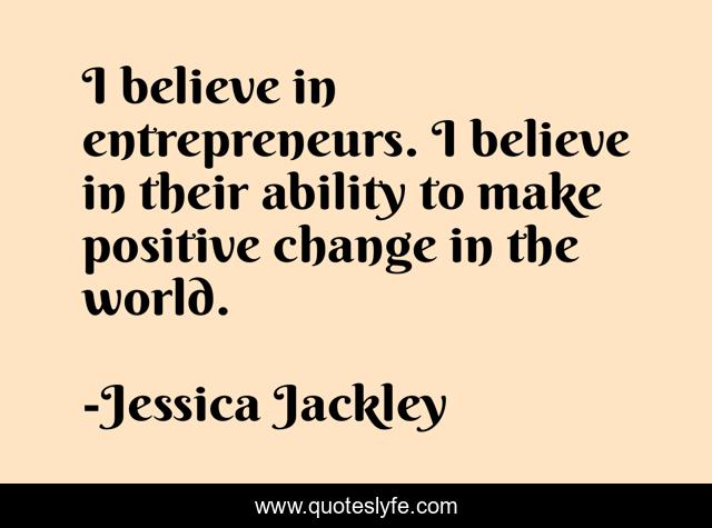 This page presents the quote "I believe in entrepreneurs. I believe in their ability to make positive change in the world.". Author of this quote is Jessica Jackley. This quote is about world, believe, change,.