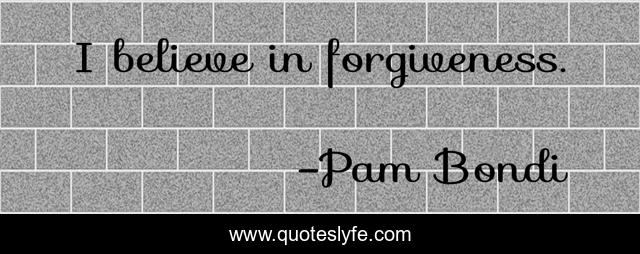 This page presents the quote "I believe in forgiveness.". Author of this quote is Pam Bondi. This quote is about i believe, believe,.