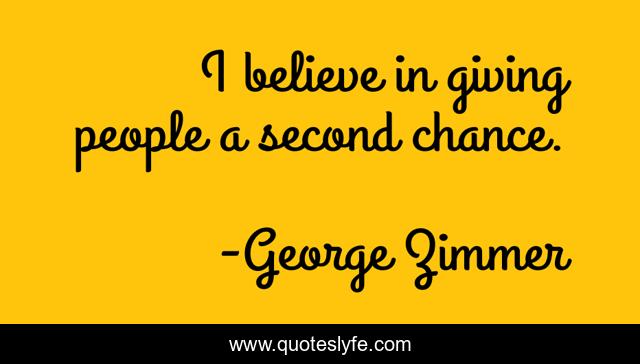 This page presents the quote "I believe in giving people a second chance.". Author of this quote is George Zimmer. This quote is about giving, believe, people,.