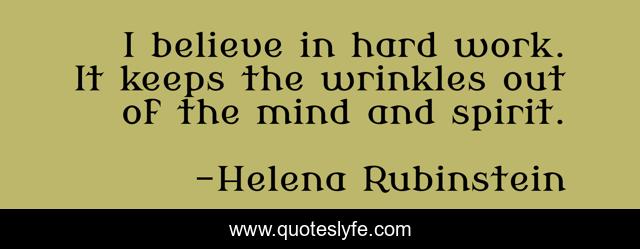This page presents the quote "I believe in hard work. It keeps the wrinkles out of the mind and spirit.". Author of this quote is Helena Rubinstein. .