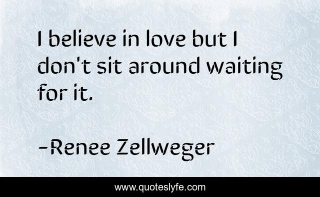 This page presents the quote "I believe in love but I don't sit around waiting for it.". Author of this quote is Renee Zellweger. .