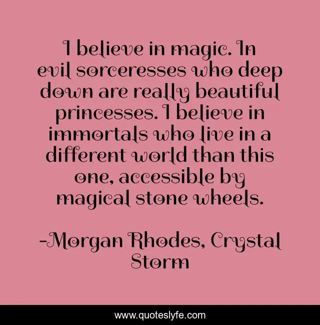 "Morgan Rhodes, Crystal Storm Quotes." Quoteslyfe.com, 2025. Mon. 08 Dec. 2025. <https://www.quoteslyfe.com/quote/I-believe-in-magic-In-evil-sorceresses-133576>.