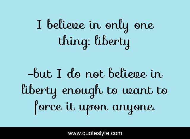 This page presents the quote "I believe in only one thing: liberty". Author of this quote is but I do not believe in liberty enough to want to force it upon anyone.. .