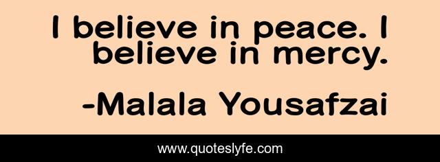This page presents the quote "I believe in peace. I believe in mercy.". Author of this quote is Malala Yousafzai. This quote is about i believe, mercy, believe,.