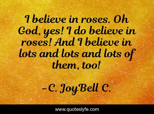 "C. JoyBell C. Quotes." Quoteslyfe.com, 2025. Tue. 09 Dec. 2025. <https://www.quoteslyfe.com/quote/I-believe-in-roses-Oh-God-yes-246880>.