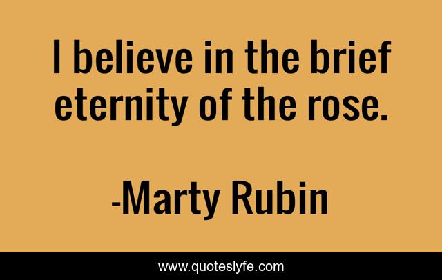This page presents the quote "I believe in the brief eternity of the rose.". Author of this quote is Marty Rubin. This quote is about eternity, permanence, impermanence, transience,.