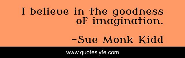 This page presents the quote "I believe in the goodness of imagination.". Author of this quote is Sue Monk Kidd. .