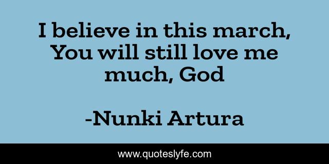This page presents the quote "I believe in this march, You will still love me much, God". Author of this quote is Nunki Artura. This quote is about god, believe, march, affection, love,.