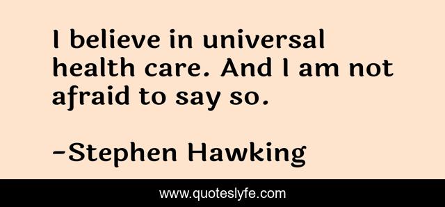 This page presents the quote "I believe in universal health care. And I am not afraid to say so.". Author of this quote is Stephen Hawking. This quote is about i believe, believe,.