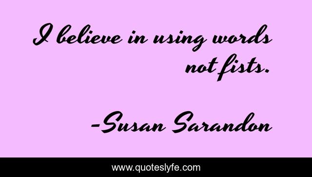 This page presents the quote "I believe in using words not fists.". Author of this quote is Susan Sarandon. .