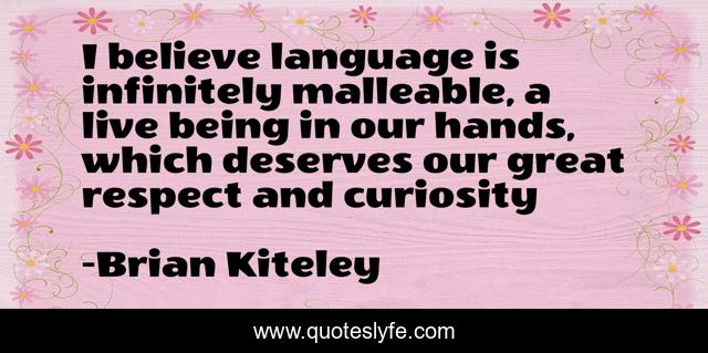 This page presents the quote "I believe language is infinitely malleable, a live being in our hands, which deserves our great respect and curiosity". Author of this quote is Brian Kiteley. .