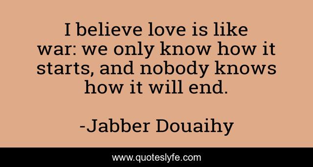 "Jabber Douaihy Quotes." Quoteslyfe.com, 2025. Mon. 08 Dec. 2025. <https://www.quoteslyfe.com/quote/I-believe-love-is-like-war-we-53069>.