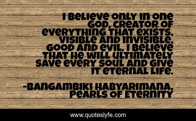 "Bangambiki Habyarimana, Pearls Of Eternity Quotes." Quoteslyfe.com, 2025. Sat. 06 Dec. 2025. <https://www.quoteslyfe.com/quote/I-believe-only-in-one-God-creator-44579>.