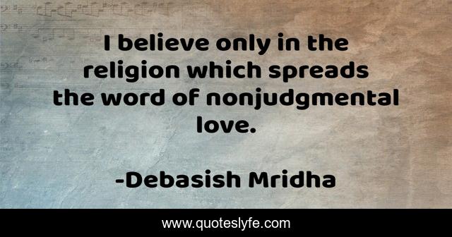 This page presents the quote "I believe only in the religion which spreads the word of nonjudgmental love.". Author of this quote is Debasish Mridha. This quote is about life, love, knowledge, inspirational, intelligence, philosophy, wisdom, quotes, affection,.