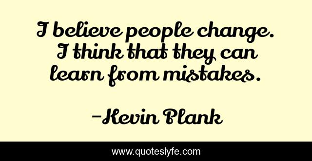 This page presents the quote "I believe people change. I think that they can learn from mistakes.". Author of this quote is Kevin Plank. This quote is about mistakes, believe, people,.