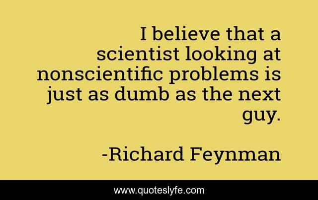 This page presents the quote "I believe that a scientist looking at nonscientific problems is just as dumb as the next guy.". Author of this quote is Richard Feynman. This quote is about feynman, philosophy, scientists,.