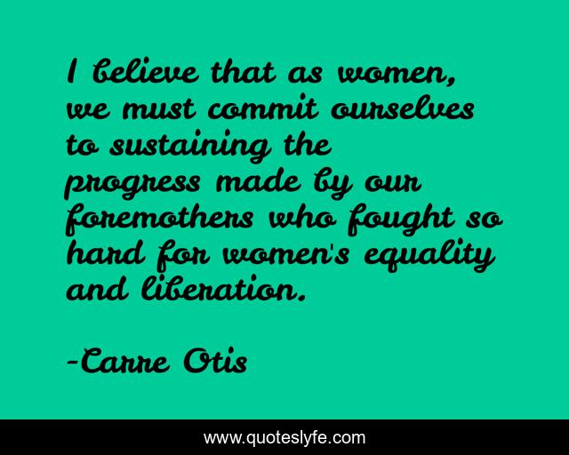 This page presents the quote "I believe that as women, we must commit ourselves to sustaining the progress made by our foremothers who fought so hard for women's equality and liberation.". Author of this quote is Carre Otis. This quote is about progress, believe, women,.