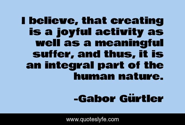 This page presents the quote "I believe, that creating is a joyful activity as well as a meaningful suffer, and thus, it is an integral part of the human nature.". Author of this quote is Gabor Gürtler. This quote is about human-nature, art, creating, inspirational, enthusiasm,.