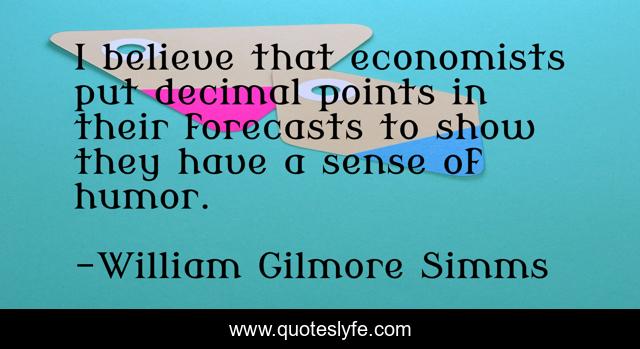 This page presents the quote "I believe that economists put decimal points in their forecasts to show they have a sense of humor.". Author of this quote is William Gilmore Simms. This quote is about i believe, believe,.