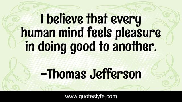 This page presents the quote "I believe that every human mind feels pleasure in doing good to another.". Author of this quote is Thomas Jefferson. This quote is about doing good, believe, mind,.