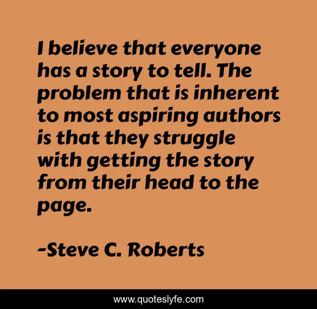 This page presents the quote "I believe that everyone has a story to tell. The problem that is inherent to most aspiring authors is that they struggle with getting the story from their head to the page.". Author of this quote is Steve C. Roberts. .
