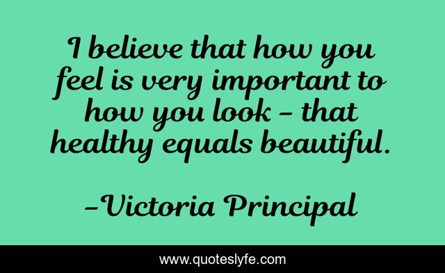 This page presents the quote "I believe that how you feel is very important to how you look - that healthy equals beautiful.". Author of this quote is Victoria Principal. This quote is about beautiful, healthy, believe,.