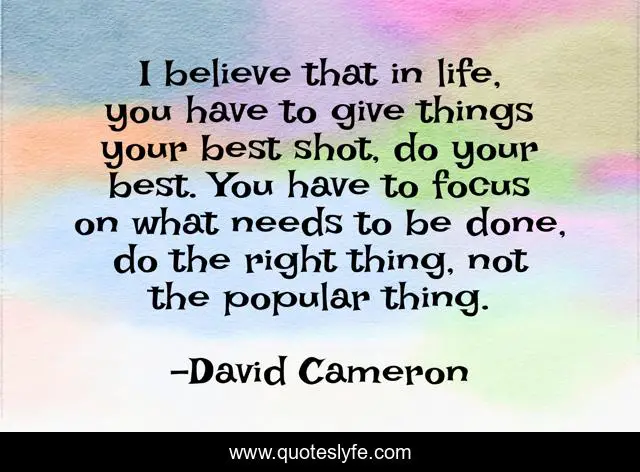 This page presents the quote "I believe that in life, you have to give things your best shot, do your best. You have to focus on what needs to be done, do the right thing, not the popular thing.". Author of this quote is David Cameron. This quote is about life, believe, focus,.