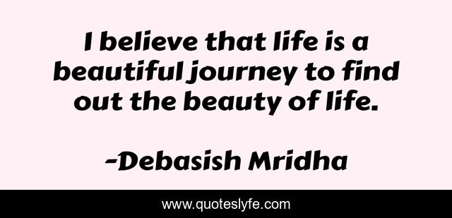 This page presents the quote "I believe that life is a beautiful journey to find out the beauty of life.". Author of this quote is Debasish Mridha. This quote is about life-is-a-beautiful-journey, i-believe, philosophy, debasish-mridha, quotes, inspirational, enthusiasm, beauty-of-life, debasish-mridha-m-d,.